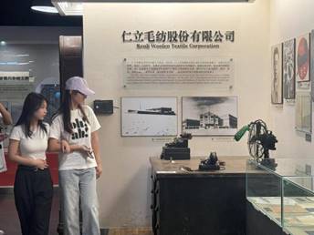 置身于展館現(xiàn)場,除了大量剪報、照片等實物的展示外,天津紡織企業(yè)在全國率先創(chuàng)立"八小時工作制",《大公報》曾在顯著位置刊登報道的報紙實物、原東亞毛紡廠濃厚而獨具民族特色的企業(yè)文化及其先進的營銷理念,以及現(xiàn)代天津紡織企業(yè)鑄就的輝煌。