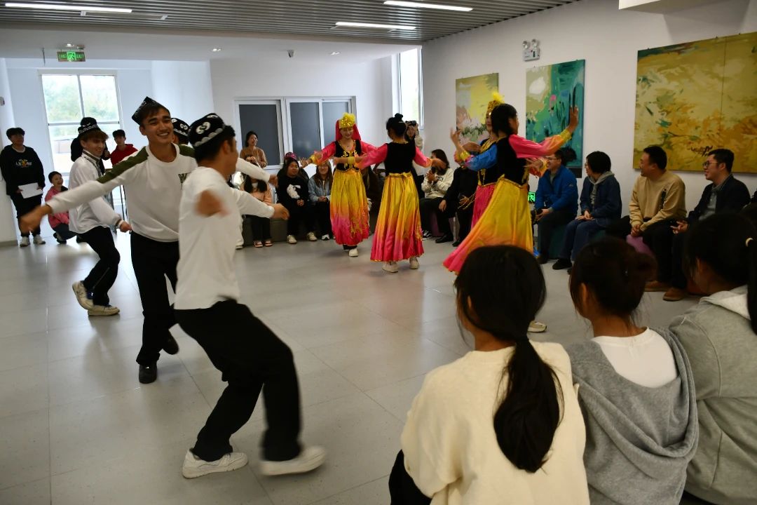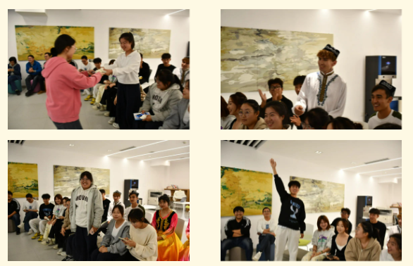 現場,維吾爾族同學帶來的開場舞《美麗姑娘》拉開了活動序幕,仿佛帶領大家來到陽光明媚耀眼,絲綢如精靈般舞動的新疆,感受維吾爾族人民的熱情與活力。隨后,4名來自不同民族的學生,依次進行自我介紹并敞開心扉,從民族團結、風俗文化、學校生活等視角,與老師、同學們分享獨特的家鄉文化和在校生活的趣事。在趣味交流中,師生踴躍參與游戲,歡聲笑語一片。