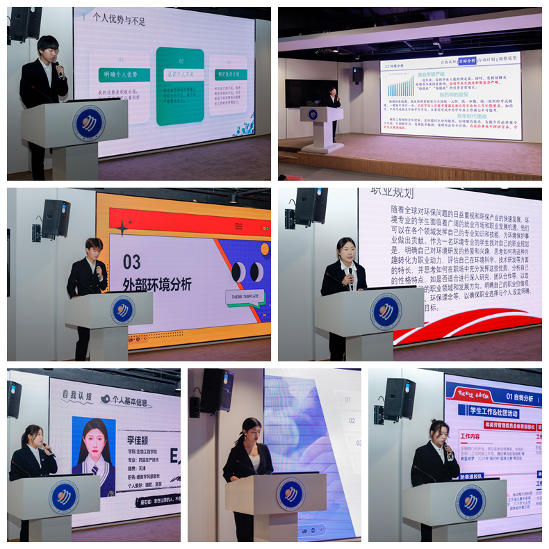 經(jīng)前期學(xué)院初賽,共有11名選手脫穎而出,入圍決賽,其中成長賽道7人,就業(yè)賽道4人。比賽過程緊張激烈,選手表現(xiàn)精彩紛呈,參賽選手從職業(yè)目標(biāo)、崗位勝任力、發(fā)展?jié)摿Φ榷鄠€角度進行自我陳述和綜合展示,將個人優(yōu)勢和經(jīng)歷等元素融入其中,把自身愿景與國家發(fā)展緊密相連,深耕專業(yè)知識、密切關(guān)注社會,將小我融入大我,展現(xiàn)青春擔(dān)當(dāng)。在答辯環(huán)節(jié),評委根據(jù)選手的展示內(nèi)容進行提問,考察選手對職業(yè)規(guī)劃的深入理解和應(yīng)對能力,并結(jié)合選手的個人特長與志趣給出專業(yè)化的指導(dǎo)意見,幫助選手們加強對職業(yè)規(guī)劃的認(rèn)識,進一步完善自身的職業(yè)生涯規(guī)劃實施路徑。