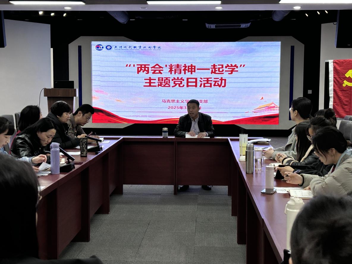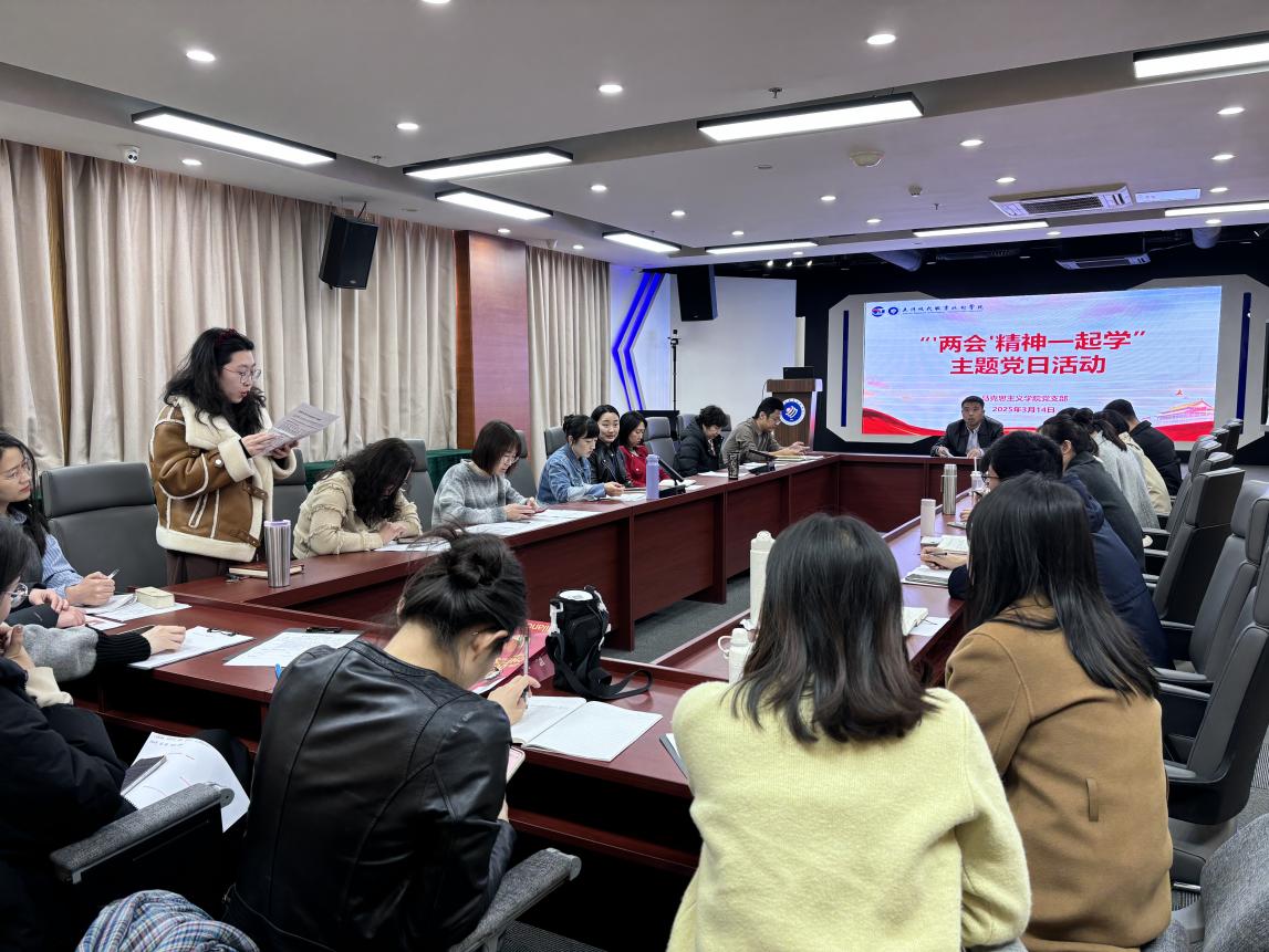 近日,馬克思主義學院黨支部在紅館二樓多功能廳召開了“‘兩會’精神一起學”主題黨日活動,學院黨員教師參與其中,共同深入學習領會兩會精神,并結合自身工作實際展開熱烈討論。
