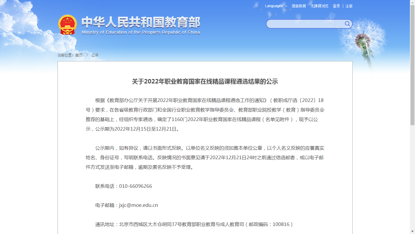 2022年12月15日,教育部發(fā)布《關(guān)于2022年職業(yè)教育國家在線精品課程遴選結(jié)果的公示》,公示了1160門2022年職業(yè)教育國家在線精品課程,這是職業(yè)教育首次獨(dú)立認(rèn)定國家在線精品課程,我院信息工程學(xué)院劉玥老師主持的《數(shù)據(jù)庫應(yīng)用技術(shù)》和生物工程學(xué)院王芃院長主持的《儀器分析技術(shù)》2門課程入選2022年職業(yè)教育國家在線精品課程公示名單。這是學(xué)院重視教育教學(xué)改革,緊抓課程建設(shè)質(zhì)量方面取得的新的突破,也是學(xué)院在“雙高”專業(yè)群建設(shè)獲得的又一標(biāo)志性成果。