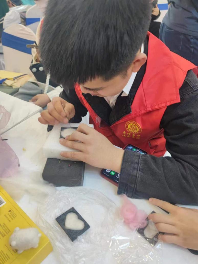 義賣現場有志愿者們精心準備的手工制作的花束、收納瓶等物品,禮品樣式紛繁多樣,此外,管理工程學院青年志愿者服務隊還準備了閑置玩偶、化妝品、博藝學社手繪板畫以及“藍絲帶”心理社團的同學們手工制作的羊毛氈等各式各樣的小物件,吸引了現場不少小朋友們前來參觀并體驗現場制作,一上午的時間轉瞬即逝,通過大家的共同努力,籌集到100余元善款,將全部用于助學殘疾兒童。