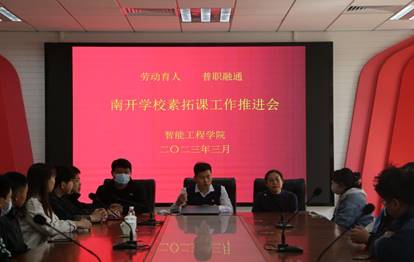 為繼續深入開展勞動教育,智能工程學院于3月15日召開了“勞動育人 普職融通”南開學校素拓課工作推進會,黨支部副書記陳慧,輔導員苑圓、楊建彪、21級學生干部和主講學生參加了此次會議。會上,陳慧介紹了智能工程學院勞動育人實踐基地建設的背景和意義,并強調學生干部是學生中的佼佼者,應率先參與到勞動育人實踐活動中,發揮示范引領作用,從而帶動廣大學生勤奮學習、勵志成才、回饋社會。他還鼓勵同學們積極參加志愿服務、創新創業、技能大賽等活動,展現智能學子的激昂風采。最后,輔導員苑圓介紹了勞動育人實踐活動的時間、內容、注意事項等,同學們紛紛表示一定會通過自己的切身行動回饋社會,承擔自己應盡的責任。