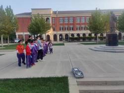 (南開學校小學生在智能工程學院學子指導下進行無人機室外操作)