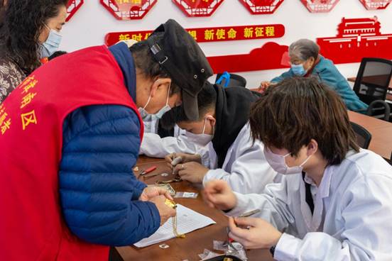 志愿服務學生王光磊,黃秀帥,索俊杰,為社區居民的問題手表逐一進行維修和保養,通過更換零件調試、污垢清洗、電池更換等操作,使年久失修的手表重新煥發活力。同學們的專業技能得到了社區領導和居民的高度認可,給予職業教育人才培養質量充分的肯定。