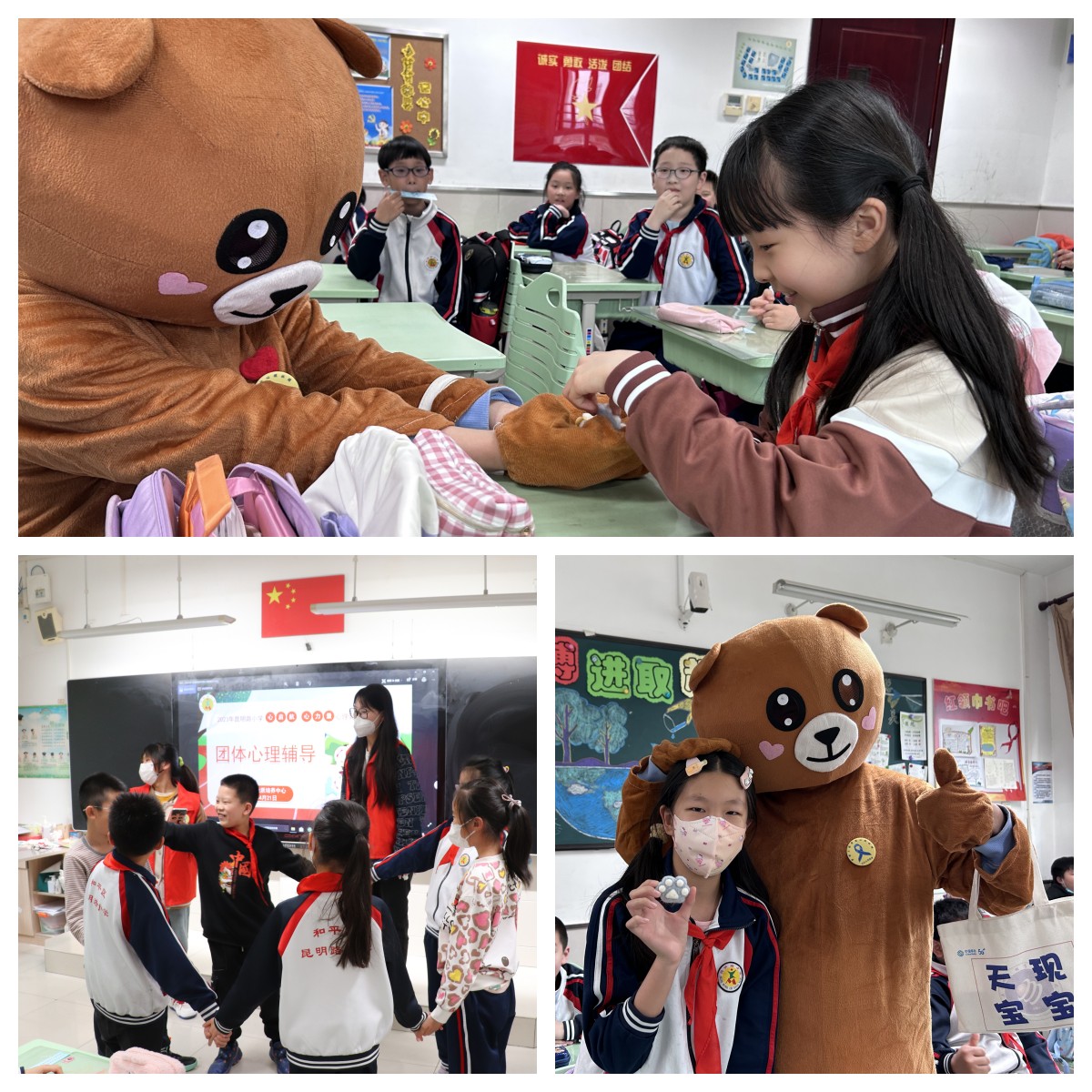 昆明路小學的同學們在活動感受分享環節紛紛表示:“活動很有意思,非常喜歡小熊玩偶,通過活動我們感到很開心,很快樂,希望哥哥姐姐以后還能來!”同時,大學生志愿者和小學生們在40分鐘的團輔活動中從陌生到熟悉再到依依不舍,最后志愿者們也送上了對小朋友們的祝福:“希望小朋友們好好學習,快樂成長!”團體心理輔導活動中,大學生志愿者和小學生們共同喚醒心身能量、增強積極情緒,激活幸福潛質,開啟了一次心靈之旅,從“心”啟航,賦能成長。