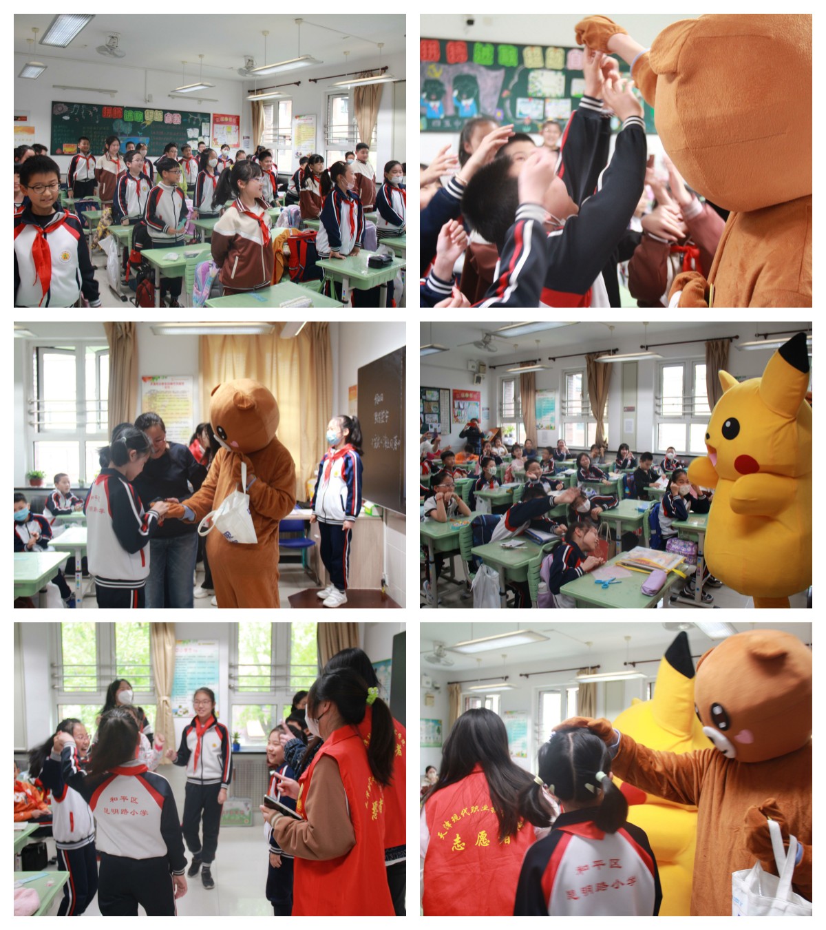 活動現場,志愿者扮成玩偶分別走進7個班級與小學生們親密互動,隨后與指導老師趙辰欣分別帶領昆明路小學的同學們進行了“手臂測量”、“小蜜蜂”、“老師說‘起立’”、“解開千千結”、“激情節拍”等團體活動,并與小學生們積極互動交流,分發自制的羊毛氈禮品。小學生們也各顯其能為志愿者們展示舞蹈,唱歌等才藝,和大家親切合影。