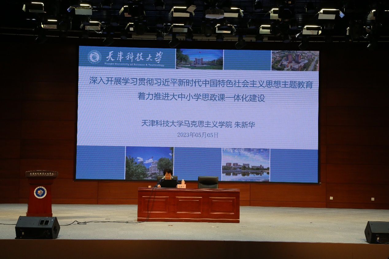 會議第二階段,由天津市大中小學思政課一體化教學研究聯盟秘書長、天津科技大學馬克思主義學院院長朱新華教授做專題報告,朱教授從大中小學思政課如何做到循序漸進、螺旋上升,如何統籌推進大中小學思政課程一體化建設,充分發揮思政課“啟智潤心、溝通心靈”的作用等方面做了詳細闡述。