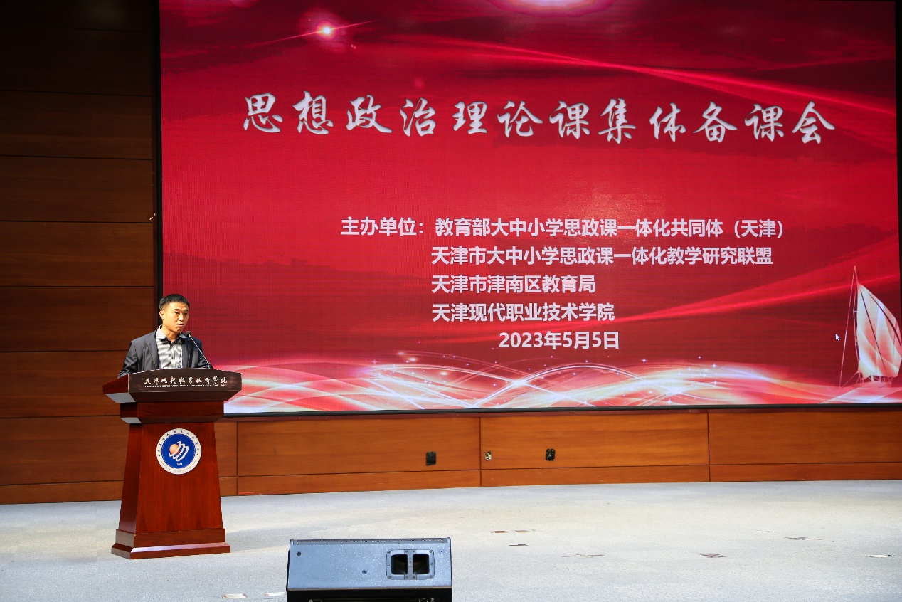 為深入貫徹落實習近平總書記關于“大思政課”建設的重要指示批示精神,統籌推進大中小學思政課程一體化建設,充分發揮思政課“啟智潤心、溝通心靈”的作用,堅持不懈用習近平新時代中國特色社會主義思想鑄魂育人,5月5日,馬克思主義學院在報告廳舉辦思想政治理論課集體備課會。教育部大中小學思政課一體化共同體(天津)、天津市大中小學思政課一體化教學研究聯盟、天津海河教育園區思政課共建共享聯盟、天津市中高職學校思政課一體化培訓與研究中心有關領導、思政聯盟院校、全體中職學校、津南區中小學的思政課骨干教師代表出席本次備課會。