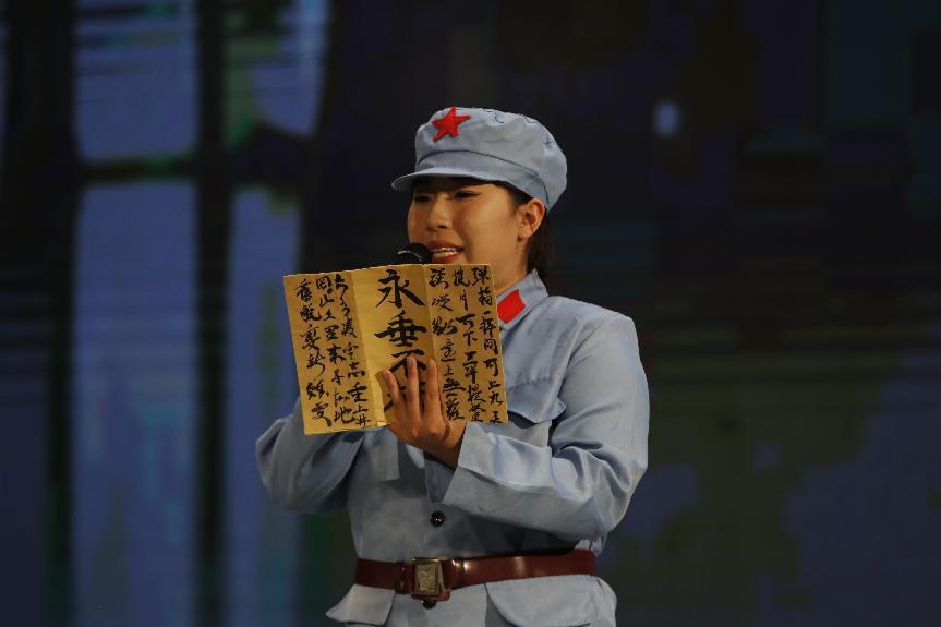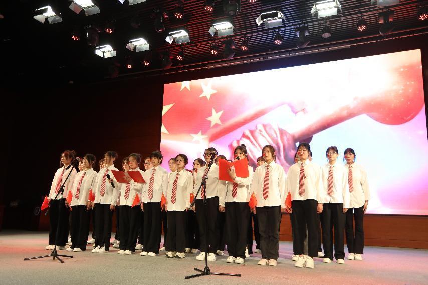晚會上,歌曲、舞蹈、朗誦、情景劇等節(jié)目內容豐富、精彩紛呈,為觀眾帶來一場視聽盛宴。開場舞《映山紅》展現了深深的革命情結和艱苦奮斗的革命精神,讓我們感受到濃濃的軍民魚水情;詩朗誦《秩秩薪火,赤熱長歌》,回顧黨的光輝歷程,謳歌黨的豐功偉績,弘揚黨的優(yōu)良傳統(tǒng);非遺曲藝天津大鼓帶領我們誦讀《長征》詩詞,感受紅軍戰(zhàn)士不畏困難、戰(zhàn)勝艱險的大無畏的英雄氣概;朗誦《紅色家書》,一起傳承學習革命先輩為國捐軀,不怕犧牲的精神;藏族舞蹈《次仁拉索》讓我們領略了西藏的山河風景和人文情懷;演講《青春心向黨》,帶領我們學習領會黨的二十大精神,從黨的二十大精神中汲取奮進的力量;歌曲《一起向未來》,展現出了青年學子們意氣風發(fā)的精神面貌,唱出了他們對未來的美好的向往;情景劇《青年周恩來》將劇中人物形象演繹得活靈活現,傳神逼真,現場師生被帶進了青年周恩來的精神世界;歌曲《國家》振奮人心,唱出了我院學子的青春豪邁,更唱出了他們與祖國心連心、同命運的家國情懷;朗誦《鑒往昔紅歌歲月,誦過往崢嶸故事》鏗鏘有力,誦出了青年學生愿為實現中華民族的偉大復興的中國夢而不懈奮斗的青春誓言。最后,師生一起合唱《團結就是力量》,展現出生物工程學院師生攜手奮進,共創(chuàng)美好未來的堅定信念。