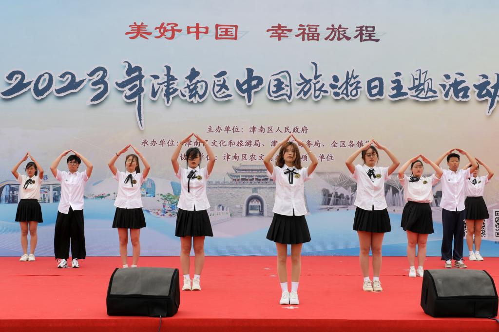 5月20日上午管理工程學院30余名文旅志愿者在津南區小站練兵園景區圍繞“中國旅游日”主題表演了包括舞蹈《長相思》,朗誦《祖國啊,我親愛的祖國》,韻律操《你要跳舞嗎?》以及茶藝展示等節目,表演內容豐富多彩,活動精彩紛呈。為廣大市民群眾帶來了一場旅游文化盛宴,體驗了中華民族深厚的人文底蘊。