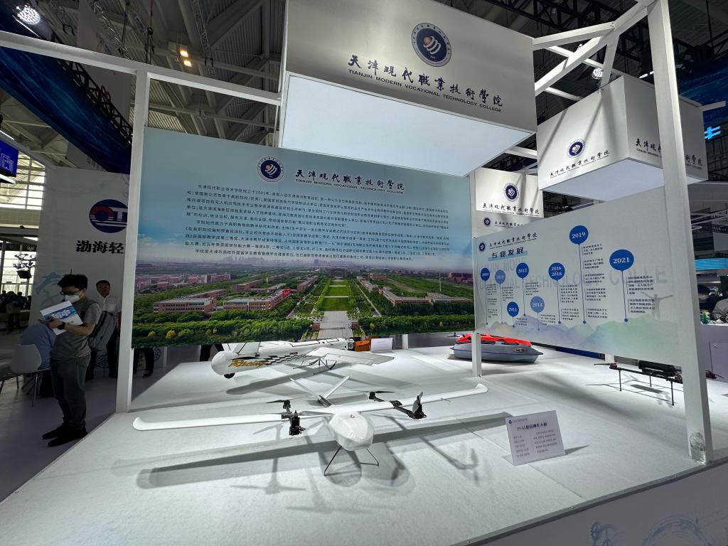 同學們首先來到我校展區領略學校特色專業的技術展示。我校作為渤輕集團代表單位參展,通過師生研發的多旋翼無人機、低速無人靶機、多功能無人船平臺等各領域無人機讓現場觀眾體驗到了無人技術智能應用的魅力。在展廳中還看到了我校生物工程學院“現代心藝”咖啡團隊的身影,高品質咖啡制作服務于整個大會期間。