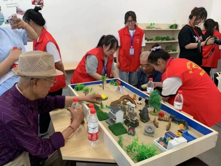 最后,老人們參與了智慧健康養老服務與管理專業的沙盤游戲體驗,通過沙盤游戲,幫助老人們疏導情緒,同時為醫護人員提供了更有針對性的專業輔導。該專業的同學們在活動中增加了實踐鍛煉,對熟悉老年群體心理特征,更好開展專業學習、提升專業素養積累了實踐經驗。
