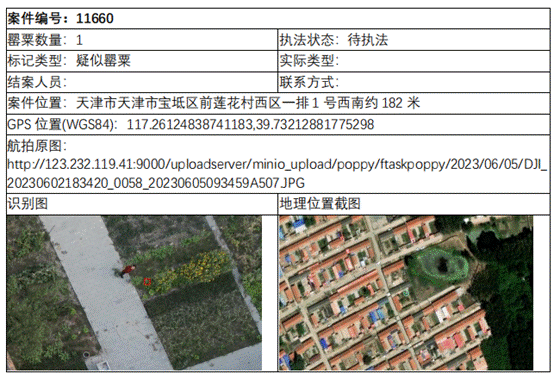 師生利用無人機飛行平臺搭載的高清攝像頭,一方面通過空中懸停拍照、攝像等功能,實時獲取監測影像數據,進行分析排查;另一方面,在飛行結束后,系統將數據上傳到罌粟圖像識別中心,對影像數據進行兩輪色彩和形態AI識別與篩查,精度高達90%以上。工作完成后,團隊將巡查發現的疑似案例提交給當地公安局進行實地復核,大大縮短了巡查時間,提高了工作效率。