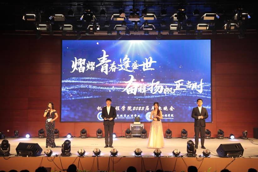 《我們都是追夢(mèng)人》表演結(jié)束后,由主持人正式宣布機(jī)電工程學(xué)院“熠熠青春逢盛世,奮楫揚(yáng)帆正當(dāng)時(shí)”2023屆畢業(yè)晚會(huì)正式開始。