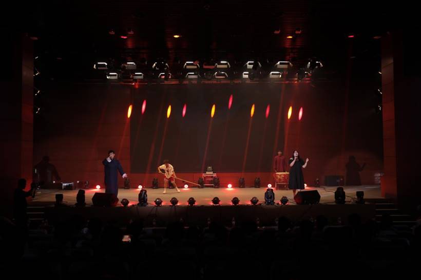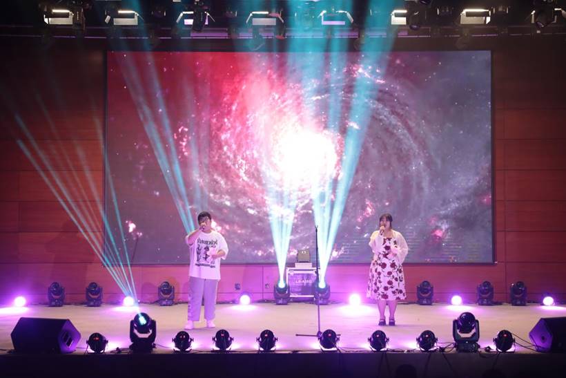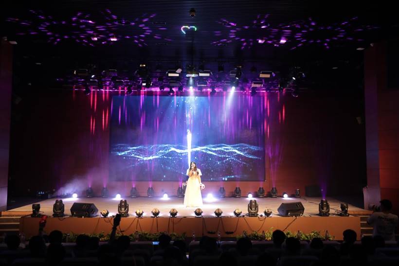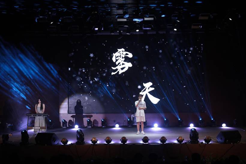 特邀19級(jí)優(yōu)秀畢業(yè)生高顥軒與大一學(xué)生同臺(tái)演唱《水星記》以強(qiáng)大的感染力打動(dòng)了全場(chǎng)觀眾,大家為之動(dòng)容,齊聲跟唱。