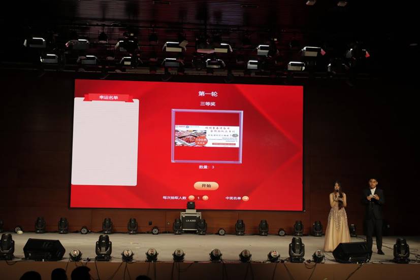 緊張刺激的抽獎(jiǎng)環(huán)節(jié),觀眾們齊聲歡呼,與主持人積極互動(dòng),伴隨著大屏幕上座位號(hào)的變換,牽動(dòng)著觀眾們的心弦,抽獎(jiǎng)環(huán)節(jié)將觀眾們的氛圍推向高潮。