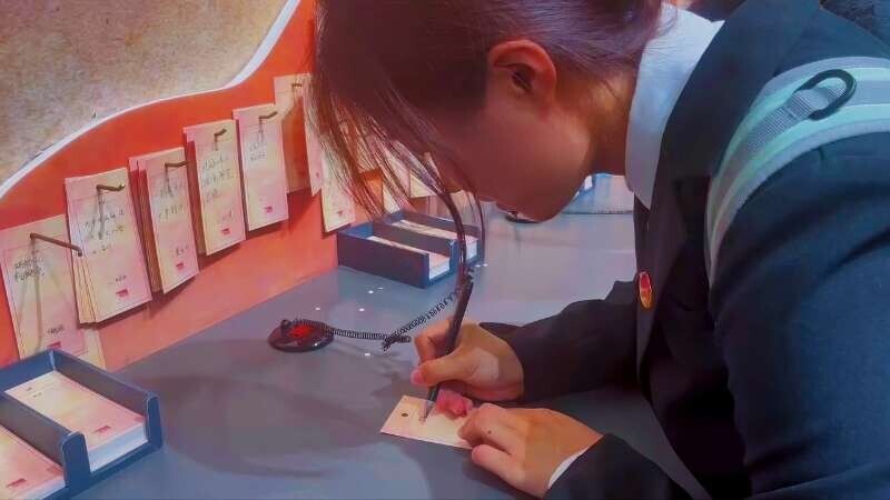 實踐團第一站前往中共一大紀念館,在紀念館學習期間,實踐團的成員在講解員的引領下,走入了“中共一大”召開那段崢嶸歲月,館內以“初心使命”為主線,共分為序廳、“前赴后繼、救亡圖存”“民眾覺醒、主義抉擇”“早期組織、星火初燃”“開天辟地、東方日出”和尾廳7個板塊,綜合采用多種展示手段,全面系統地展示了中國共產黨的誕生歷程。實踐團成員還在留言墻上寫下了“請黨放心、強國有我”等展現現代學子家國情懷的錚錚誓言。參觀過程中,實踐團成員紛紛表示,重溫建黨歲月是現代學子的必修課。希望借此社會實踐活動,了解更多有關建黨之初的歷史故事、歷史背景,只有這樣才能更好地傳承紅色基因,賡續紅色血脈,守好紅色江山。