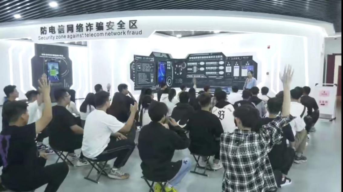 思政課教師充分利用場館資源,就地取材,組織學生坐馬扎上聽課,老師通過案例剖析、模擬對比等方式,給學生講解了防電信詐騙、網絡貸款等內容,學生坐在馬扎上聽得有滋有味。