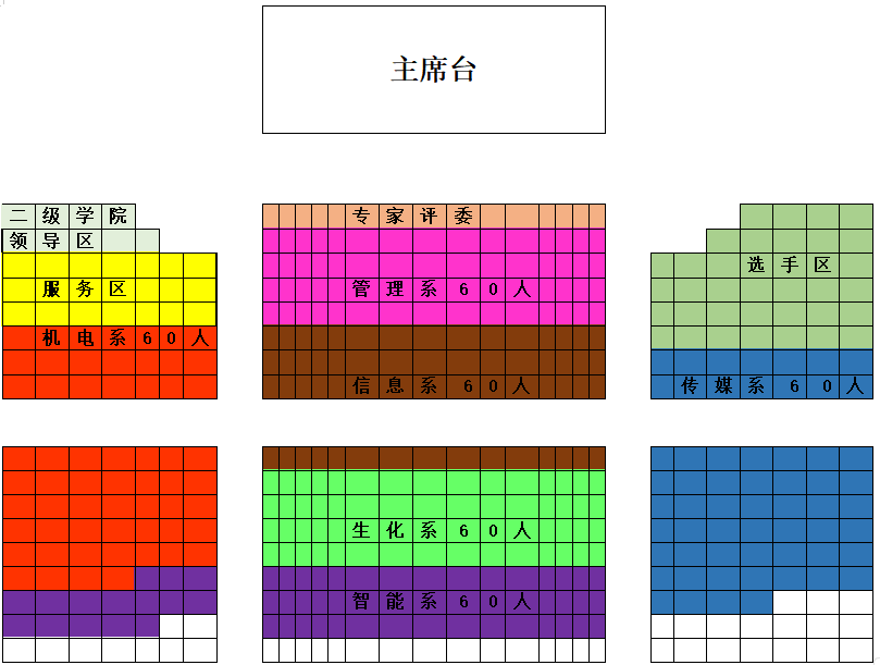 3、請各二級學院組織學生觀摩團(各二級學院60人),后附座位圖。學生觀摩團需提前十五分鐘入場。