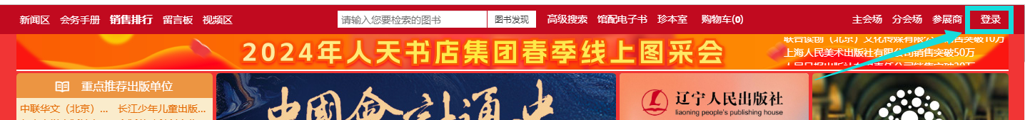 1、主會場:其右上角展示圖書采會開幕式領導講話及平臺消息發布。其他板塊主要展示重點出版社書目,直接點擊出版社名稱即可進入選書界面。
