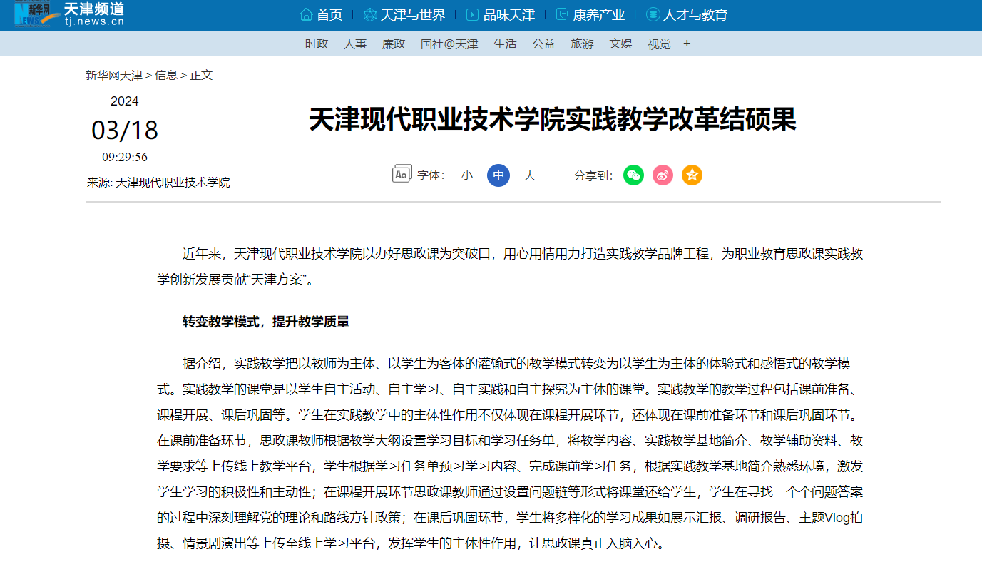 天津現代職業(yè)技術學院實踐教學改革結碩果??