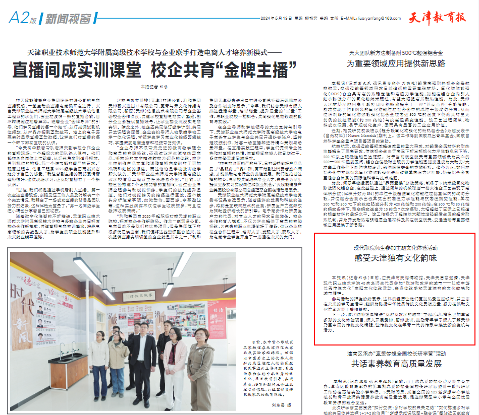 本報訊(記者劉佳)日前,應天津市民俗博物館、天津天后宮邀請,天津現代職業技術學院40余名師生代表參加“我游我求學的城市——弘揚中華優秀傳統文化”主題文化體驗活動,親身體驗感知天津獨有的文化韻味和城市精神。