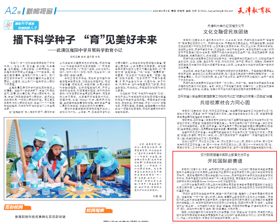據(jù)悉,為持續(xù)提升現(xiàn)代學(xué)院國(guó)際化辦學(xué)質(zhì)量,加快“職教出?!钡牟椒ィ旖颥F(xiàn)代職業(yè)技術(shù)學(xué)院和英國(guó)教育與教學(xué)質(zhì)量控制協(xié)會(huì)(AQCET)簽署戰(zhàn)略合作協(xié)議,就中英師資培訓(xùn)、師生人文交流互訪、中英合作辦學(xué)繼續(xù)開展深入合作。