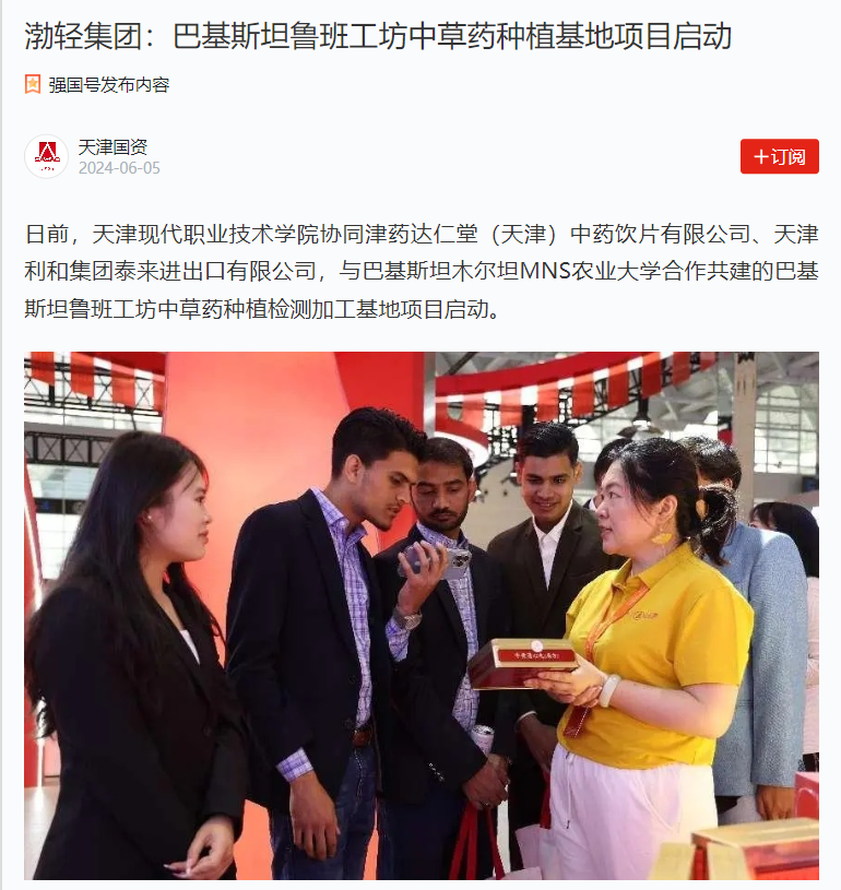 日前,天津現(xiàn)代職業(yè)技術學院協(xié)同津藥達仁堂(天津)中藥飲片有限公司、天津利和集團泰來進出口有限公司,與巴基斯坦木爾坦MNS農(nóng)業(yè)大學合作共建的巴基斯坦魯班工坊中草藥種植檢測加工基地項目啟動。