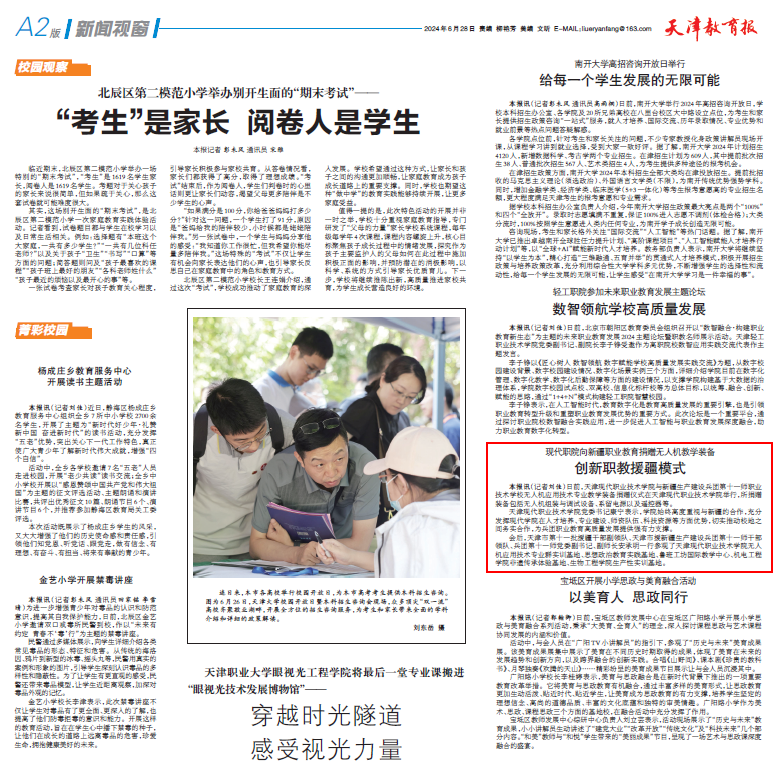 本報訊(記者劉佳)日前,天津現代職業技術學院與新疆生產建設兵團第十一師職業技術學校無人機應用技術專業教學裝備捐贈儀式在天津現代職業技術學院舉行,所捐贈裝備包括無人機組裝與調試設備、系留電源以及遙控器等。