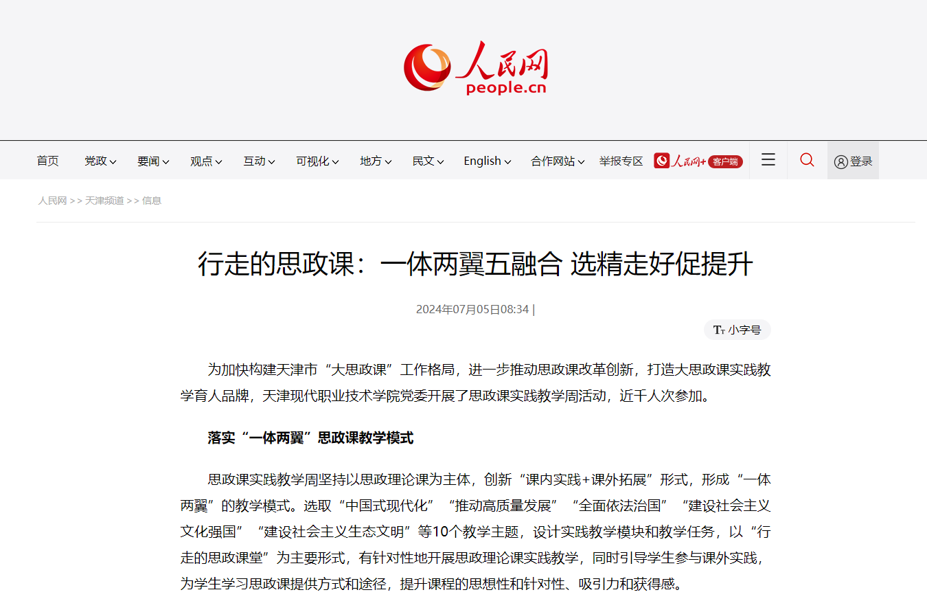為加快構(gòu)建天津市“大思政課”工作格局,進(jìn)一步推動(dòng)思政課改革創(chuàng)新,打造大思政課實(shí)踐教學(xué)育人品牌,天津現(xiàn)代職業(yè)技術(shù)學(xué)院黨委開(kāi)展了思政課實(shí)踐教學(xué)周活動(dòng),近千人次參加。