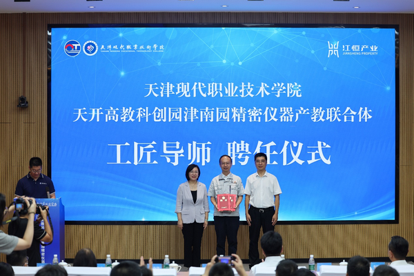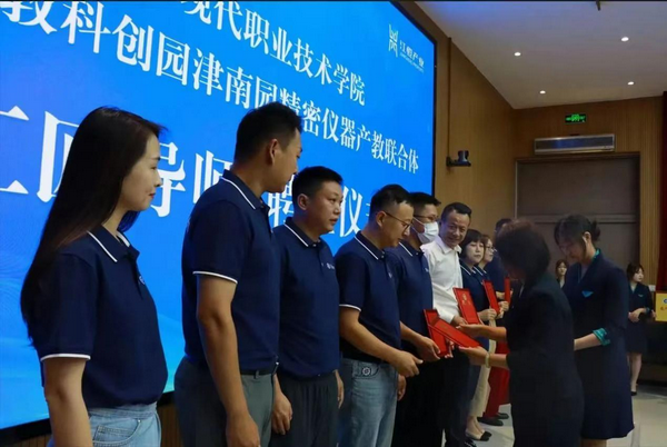 ??現代學院和產教聯合體共同聘請“海河工匠”崔少華為“工匠導師”,聘請天津江恒產業管理有限公司總經理李明山等企業代表為“產業導師”。