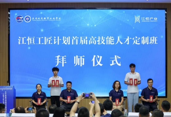 ??隨后,為首屆高技能人才定制班的20名學員頒發錄取通知書并現場舉行了校企“雙導師”拜師儀式。