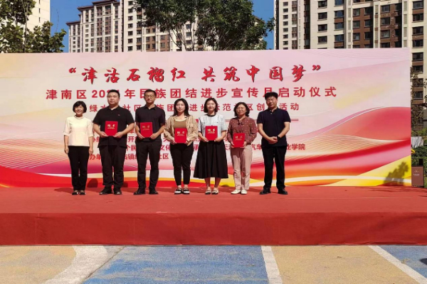 ??儀式上,現(xiàn)代學院少數(shù)民族學生為觀眾表演的歌舞節(jié)目《上春山》獲得在場觀眾的陣陣掌聲,為活動營造了濃厚的民族團結(jié)氛圍。同時,馬克思主義學院教師楊賽被津南區(qū)委統(tǒng)戰(zhàn)部聘為“津南區(qū)民族團結(jié)進步宣講團”成員。
