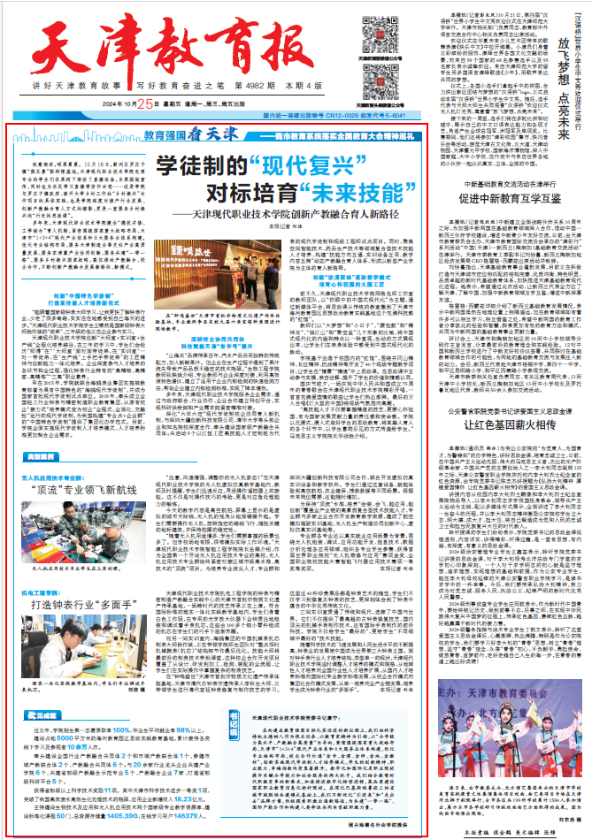 多年來,天津現代職業技術學院健全“德技并修、工學結合”育人機制,緊密圍繞國家重大戰略布局、天津市“1+3+4”現代產業體系和8大服務業體系構建,優化專業結構布局,服務天津制造業等支柱產業高質量發展、服務京津冀產業協同創新、服務共建“一帶一路”、服務鄉村振興國家戰略,高位推動產教融合、校企合作,不斷創新產教融合發展新路徑、新模式。