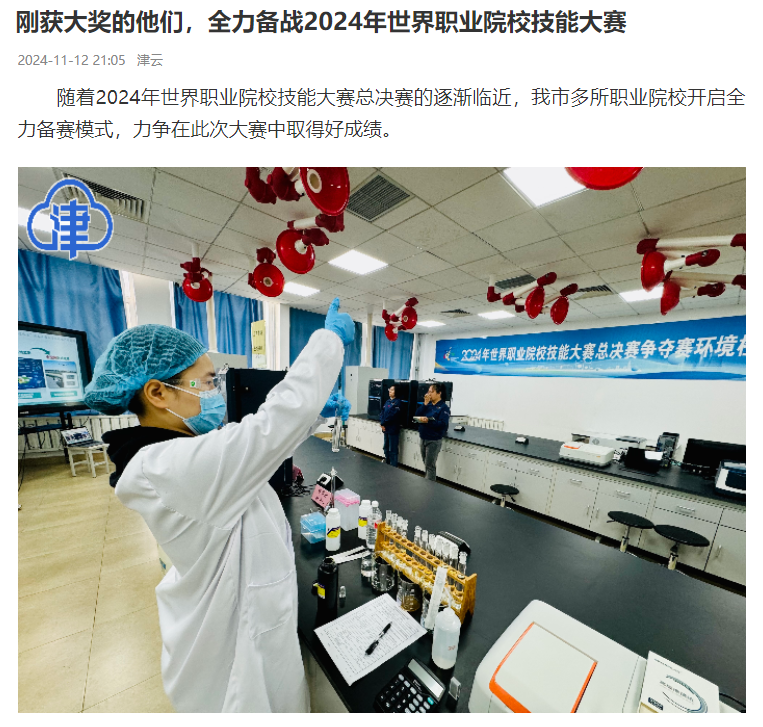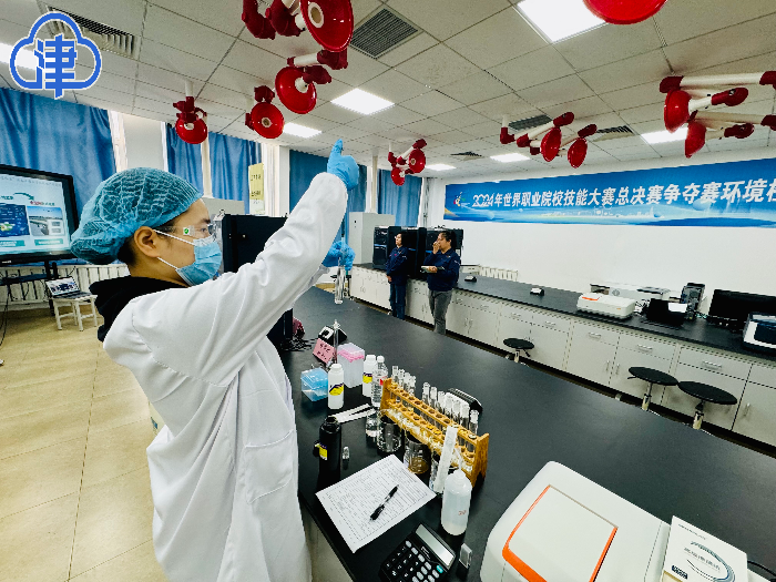 在剛剛結束的2024年世界職業院校技能大賽總決賽爭奪賽(高職組)資源環境與安全賽道三環境檢測與監測賽項中,由天津現代職業技術學院生物工程學院環境工程技術專業2名指導教師和3名學生組成的5人團隊獲得第一名。目前,團隊成員正在加緊訓練,向接下來的2024年世界職業院校技能大賽總決賽沖刺。