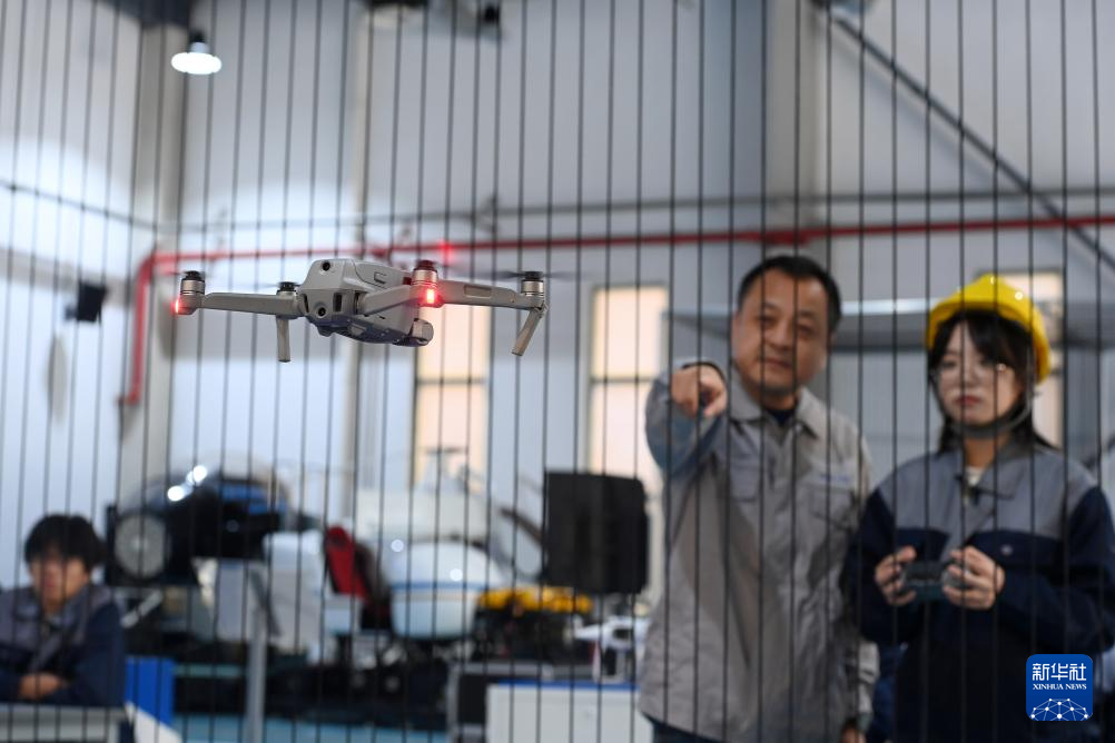 ??11月12日,天津現代職業技術學院老師在無人機產教融合實踐中心指導學生。