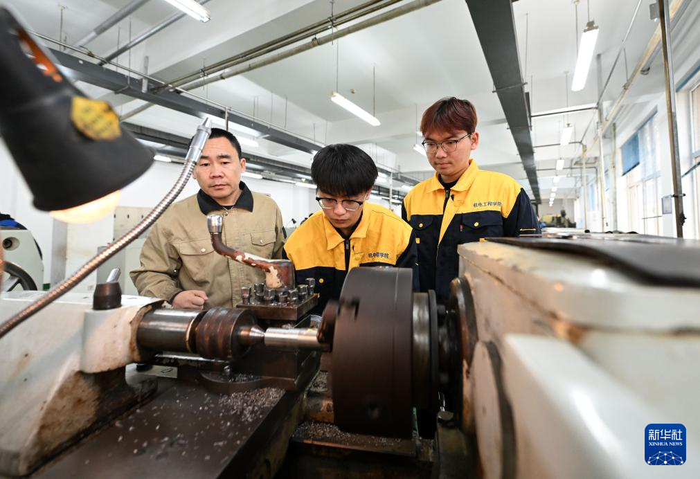 11月12日,天津現代職業技術學院老師在鐘表與精密制造產教融合實踐中心指導學生。?