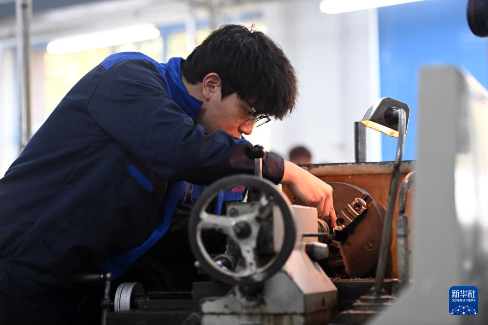 ??11月12日,天津現代職業技術學院學生在鐘表與精密制造產教融合實踐中心操作設備。