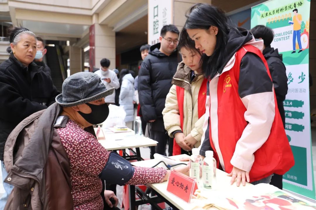 “阿姨,您的血壓有點(diǎn)高,平時(shí)要注意飲食。”天津現(xiàn)代職業(yè)技術(shù)學(xué)院生物工程學(xué)院師生正在為社區(qū)居民進(jìn)行健康檢測(cè)。他們利用專業(yè)知識(shí),為居民提供血壓、血脂、血糖測(cè)量等服務(wù),守護(hù)居民健康。