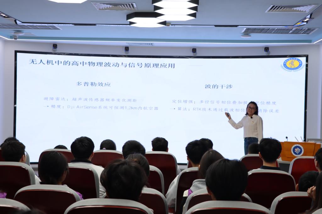 “高中物理中的無人機科學有哪些?牛頓第三定律、多普勒效應(yīng)、波的干涉等等,這些物理知識體現(xiàn)在無人機的方方面面......”物理課教師通過科學原理,講述了無人機的設(shè)計與開發(fā)涉及哪些專業(yè)學科等問題,激發(fā)了他們的專業(yè)興趣。