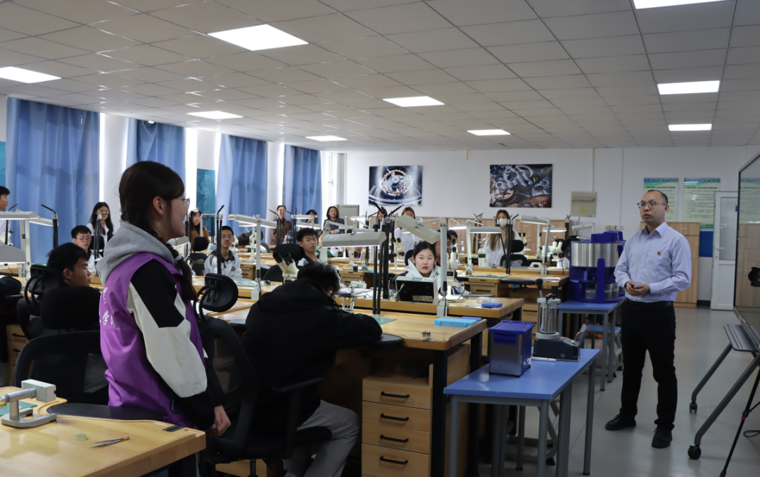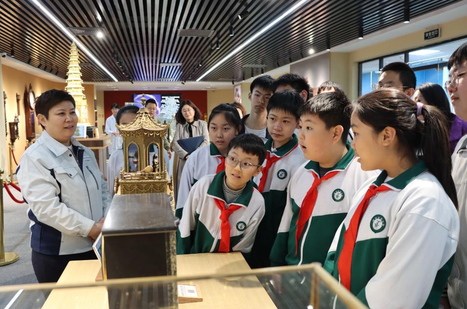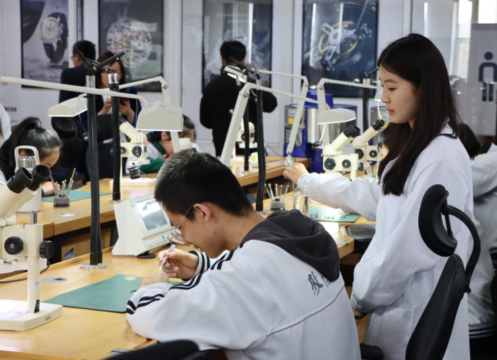 在“鐘鳴盛世”非遺傳承基地,一座座工藝精湛的古鐘表讓學生們了解到古董機械鐘表不僅是時間的記錄者,更是傳統(tǒng)工藝的瑰寶。在機械手表裝調(diào)實訓基地,微觀機械世界的精致與嚴謹更是引發(fā)了大中小學生們對“工匠精神”的思考。