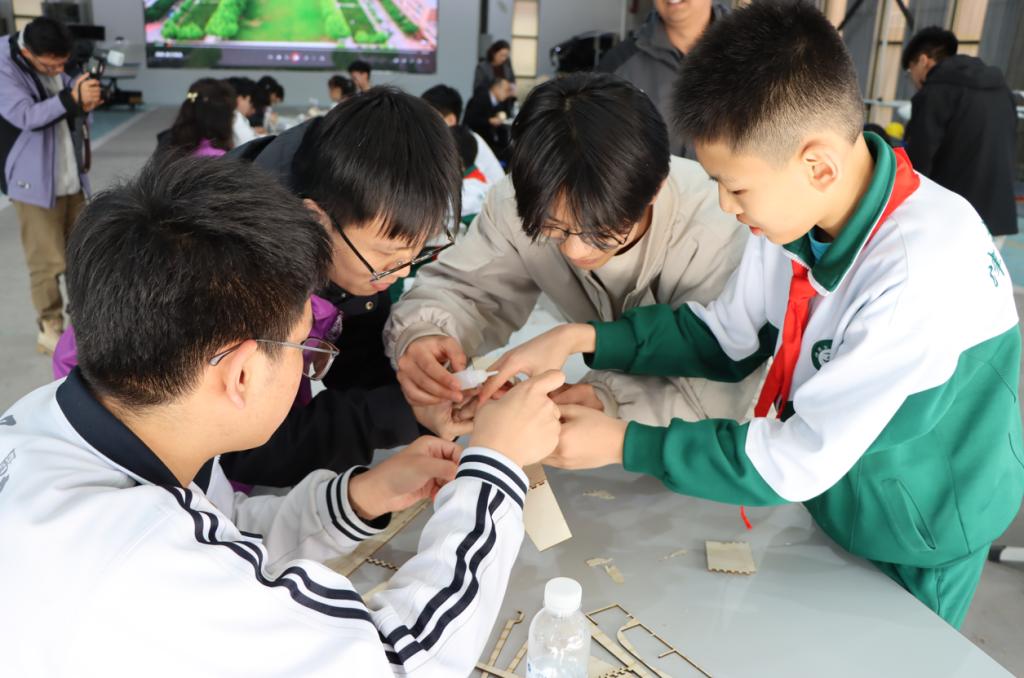 “起飛成功。”當木制無人機起飛那一刻,全場一片歡呼,學生們在零件組合拼裝中再次體悟工匠精神的豐富內(nèi)涵。
