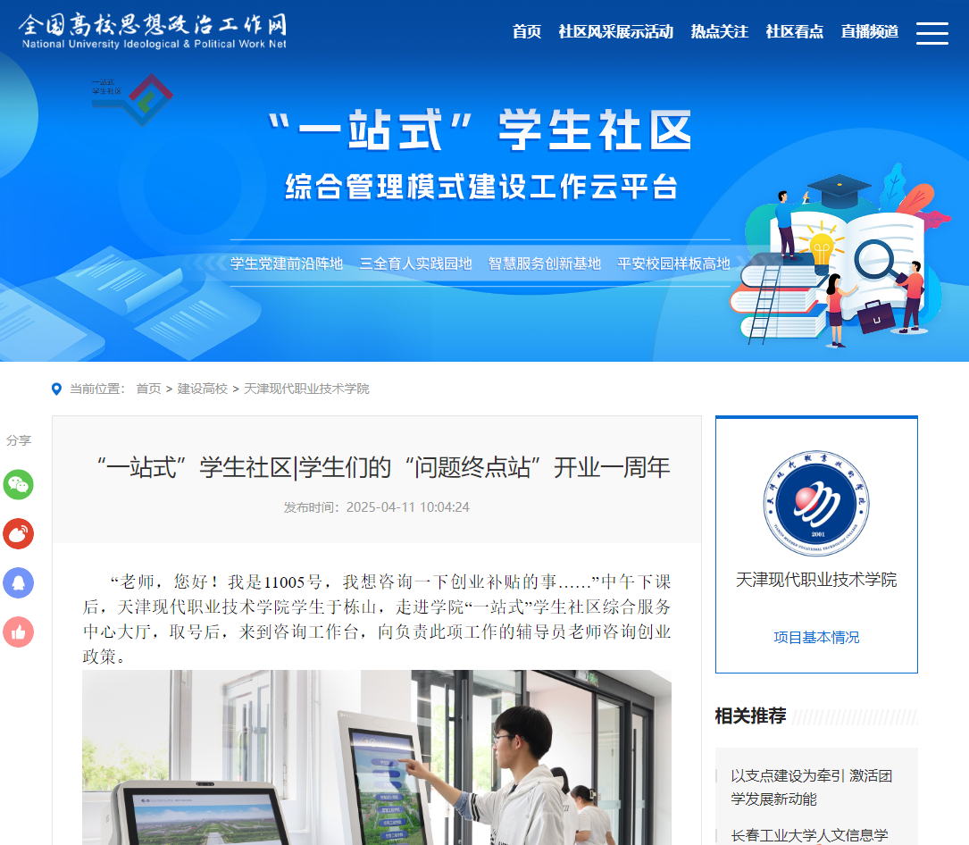 天津現代職業技術學院“一站式”學生社區綜合服務中心于2024年4月11日揭牌成立。這座位于學生社區中心位置的閑置樓宇,歷經近3個月的升級改造,成為學生們的“問題終點站”。有的學生在大廳工作臺前咨詢相關政策、辦理各項事宜;有的學生在心理咨詢室向老師“吐露”心聲、在活動區參加培訓。大廳的墻面上,顯示著全校所有輔導員的名字以及在中心崗位或者在上課、外出、會議中的各種實時狀態。天津現代職業技術學院黨委書記康寧向來校參觀的領導介紹說:“中心成立后,校、院兩級輔導員已全部進駐綜合服務中心。中心所在位置左為宿舍,右為教室,前為食堂,后為體育場,正好在學生生活區的中心。學生有任何事情和困惑,都可以到中心咨詢和辦理?!?/p>