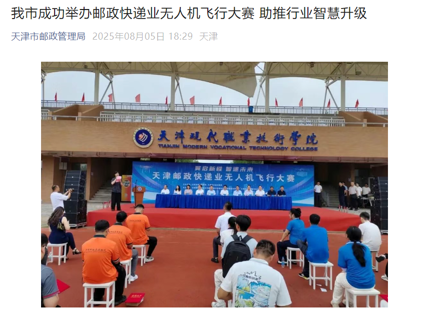 為貫徹落實《國家郵政局關于加快郵政業科技發展的意見》,推動我市郵政快遞業低空經濟創新應用,促進產學研融合發展,8月5日,“翼啟新程 智遞未來——天津郵政快遞業無人機飛行大賽”成功舉辦,為郵政快遞業低空經濟高質量發展探索新路徑。市郵政管理局黨組書記、局長王東,市交通運輸委員會總經濟師、二級巡視員孫長國,市發展改革委二級巡視員朱楚雄,天津渤海輕工投資集團有限公司副總經理、天津低空經濟研究院有限公司執行董事楊川,天津現代職業技術學院黨委書記康寧出席活動。