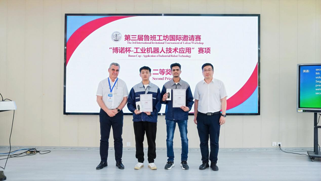 課堂之上,技術精進的階梯更為陡峭。自動化生產線、機器人設備、計算機操作……課程難度遠超烏馬爾在巴基斯坦所學。他迎難而上,將汗水融入實訓室的每一個日夜,這份執著在第三屆魯班工坊國際邀請賽的競技場上璀璨綻放。面對強手如林,烏馬爾與中國隊友并肩作戰,一路過關斬將,最終勇奪大賽第二名。“那一刻的激動和開心太難忘了!”這份榮譽,是對他跨越山海追尋技術夢想的最佳回響。