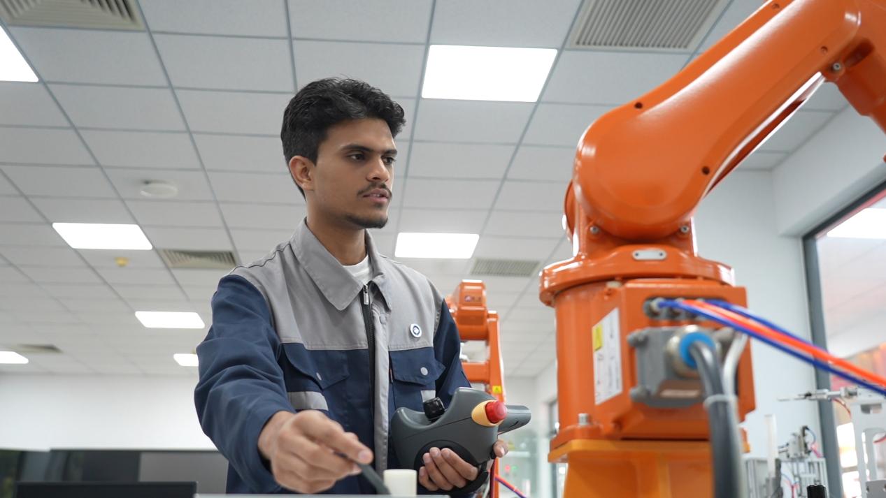 兩年前,懷揣著對頂尖技術的向往,烏馬爾循著魯班工坊項目的指引,跨越千山萬水來到天津現代職業技術學院。此前,他在巴基斯坦的魯班工坊已初涉電氣自動化技術,正是那半個月的啟蒙,點燃了他心中“到技術源頭去”的渴望。