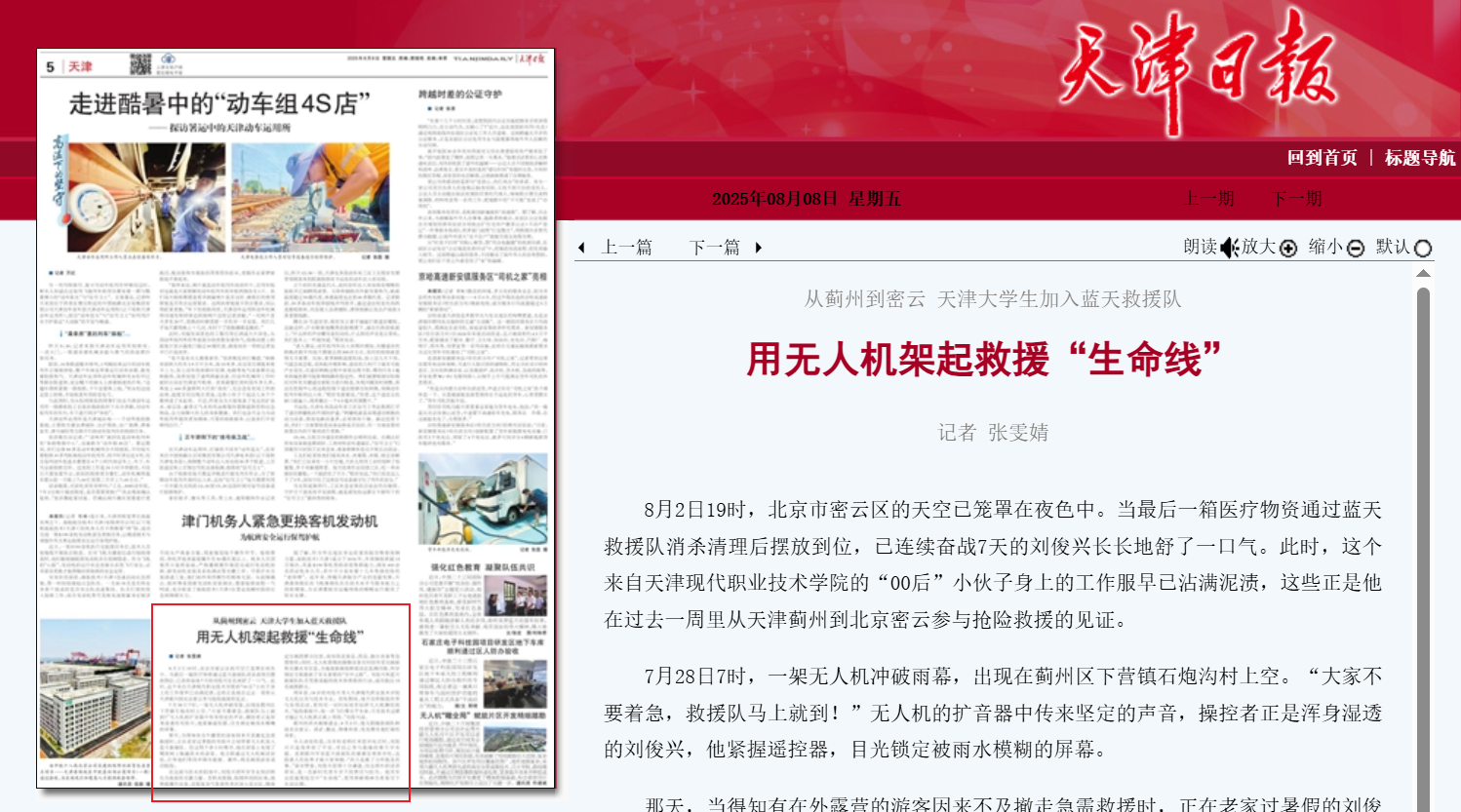 令人動容的是,當學校老師打來慰問電話時,劉俊興只是簡單報了平安,對自己參與救援的事只字未提。直到薊州平安藍天救援隊的感謝信寄到學校,這段感人的故事才被大家知曉?!拔抑皇亲隽肆λ芗暗氖隆!泵鎸澴u,劉俊興顯得十分謙遜,但這質樸的話語背后,是一名新時代青年學子的責任與擔當。他用專業技能架起空中“生命線”,更用奉獻精神為青春寫下生動注腳。