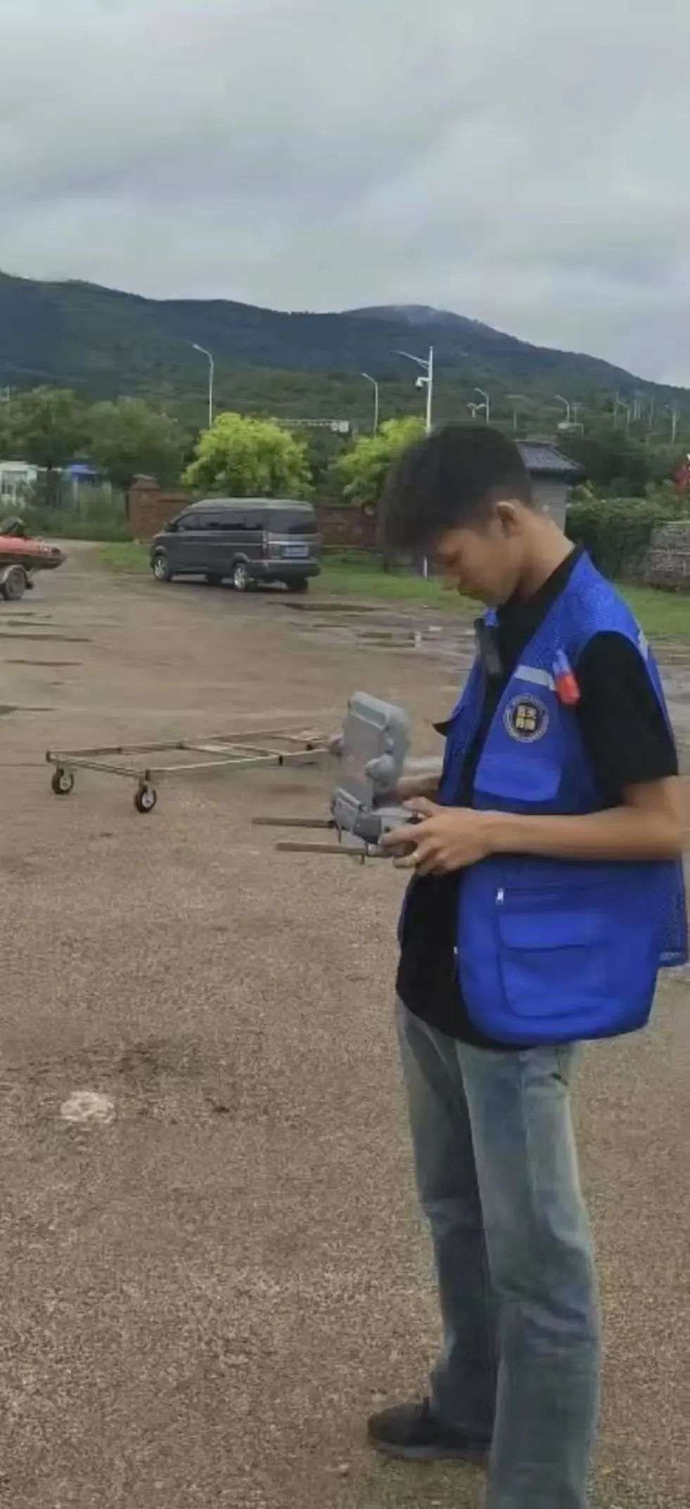 7月28日早上7時,一架無人機沖破雨幕,出現在下營鎮石炮溝村上空。“大家不要著急,救援隊馬上就到!”無人機的擴音器中傳來堅定的聲音。操控者正是渾身濕透的劉俊興,他緊握遙控器,目光鎖定雨水模糊的屏幕。