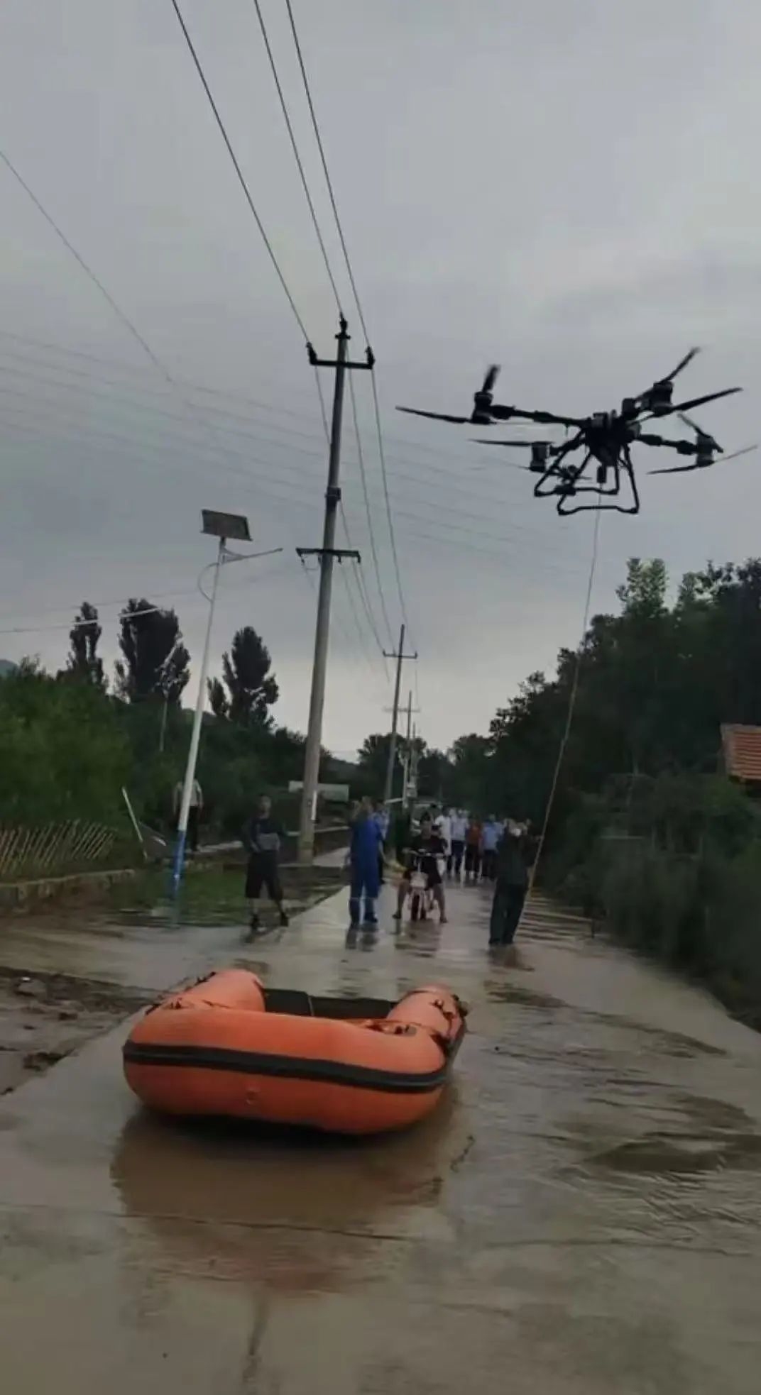 在這場與洪水的較量中,劉俊興將所學專業知識轉化為救援的關鍵力量。在積水阻隔、險情環伺的區域,他熟練操作設備,克服復雜氣象條件,多次深入受災區,精準定位被困群眾位置,高效投送食品、藥品、救生設備等急需物資;同時,無人機搭載的攝像設備實時回傳受災畫面和關鍵水文信息,為地面救援指揮部動態監測汛情、科學制定方案提供了至關重要的“空中之眼”。劉俊興和藍天救援隊隊員憑借高超的技術和勇敢的行動,成功救出15名被困群眾。
